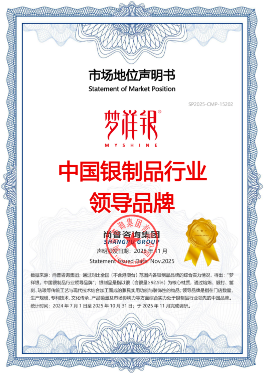 市场地位证明丨河南连锁发挥集采优势助力【梦祥银】确立“中国银制品行业领导品牌”